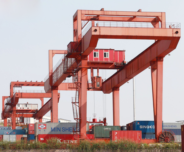 單主梁門式起重機(jī)結(jié)構(gòu)簡單,制造安裝方便,自身質(zhì)量小,主梁多為偏軌箱形架結(jié)構(gòu)。與雙主梁門式起重機(jī)相比,整體剛度要弱一些。因此,當(dāng)起重量Q≤50t、跨度S≤35m時,可采用這種形式。單主梁門式起重機(jī)門腿有L型和C型兩種形式。L型的制造安裝方便,受力情況好,自身質(zhì)量較小,但是,吊運(yùn)貨物通過支腿處的空間相對小一些。C型的支腳做成傾斜或彎曲形,目的在于有較大的橫向空間,以使貨物順利通過支腳。