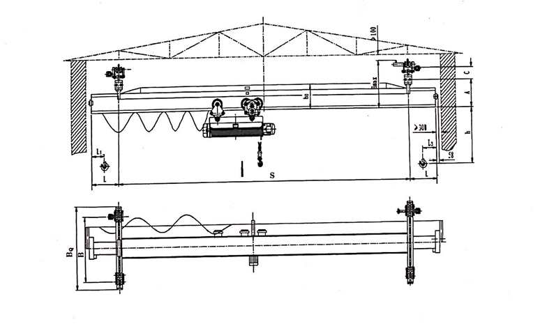 電動單梁懸掛起重機由鋼板與工字鋼組焊成的主梁、端梁、電動葫蘆及電動跑車組成,懸掛在廠房上部的工字梁軌道上,懸臂長度0.5~1m,電動葫蘆沿主梁工字鋼下翼緣運行,完成物品的吊運工作,具有結(jié)構(gòu)輕巧、安裝維護(hù)方便等特點,廣泛應(yīng)用于生產(chǎn)車間、倉庫及貨場等場所。工作級別為A3-A5。