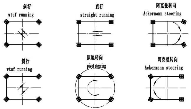 4、多種轉向方式組合使用,具有直行、斜行、原地回轉、阿克曼轉向等方式,高效節(jié)能。