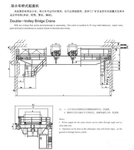 本起重機(jī)是采用國(guó)際國(guó)內(nèi)最新的標(biāo)準(zhǔn)系列設(shè)計(jì)、制造的產(chǎn)品。整機(jī)結(jié)構(gòu)新穎、造型美觀、工藝性好、操作靈活平穩(wěn)、安全可靠。主要特點(diǎn):橋架采用箱型主梁,CO2氣體保護(hù)焊接。小車(chē)導(dǎo)電采用異型鋼軌電纜導(dǎo)電新裝置。零部件標(biāo)準(zhǔn)化、系列化、通用化。司機(jī)室視野開(kāi)闊,內(nèi)設(shè)控制機(jī)構(gòu)聯(lián)動(dòng)臺(tái),操作靈活,工作舒適,還可根據(jù)要求設(shè)風(fēng)扇、空調(diào)器、超負(fù)荷指示器等。司機(jī)室與跨尖設(shè)有斜扶梯,方便操縱及檢修??筛鶕?jù)用戶(hù)的要求設(shè)計(jì)各種非標(biāo)準(zhǔn)產(chǎn)品。